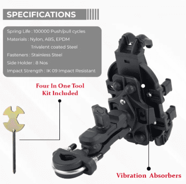 Universal Mobile Holder is designed to provide a secure and convenient solution for mounting your phone while riding. Its durable construction ensures stability even on rough terrain, providing ease of access to your phone’s screen for navigation or communication. Ideal for motorcycles, the holder fits most handlebars and accommodates various phone sizes with adjustable side supports.
