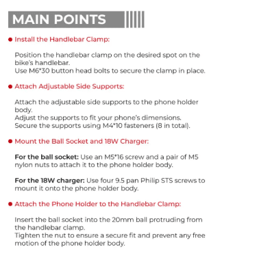 - Adjustable Side Supports: Fits various phone sizes with M4*10 fasteners for a snug hold.