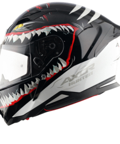 The AXOR Hunter helmet is expertly designed for the rider enthusiast, featuring ISI, DOT, and ECE 22.06 certification for maximum safety. It comes with a scratch-resistant, UV-resistant visor that offers an easy quick-release mechanism for seamless visor changes. The helmet has an additional feature of a Visor lock button. The helmet utilizes a micrometric buckle, ensuring a secure fit.
