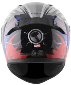 Disney Marvel Thor comes with a high-impact ABS Material Shell and Aerodynamic design. Removable and washable lining, it is also odor resistant helping the helmet stay fresher, and longer in between cleaning. This helmet is ISI & DOT Certified which comes with a quick-release metallic buckle, an optical polycarbonate visor with scratch and UV resistance, and an easy mechanism. It also has a back exhaust vent with a spoiler, with 2 top vents and a Mouth vent, it gives total assurance of safety and rides freely on the roads.