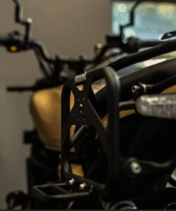 The Saddle Stay with Jerry Can Mount, designed for the Guerrilla 450 in Black Texture, offers a durable and practical solution for carrying extra fuel and securing luggage. Built for adventure enthusiasts, it combines robust construction with precision engineering, ensuring maximum convenience and safety on extended rides.