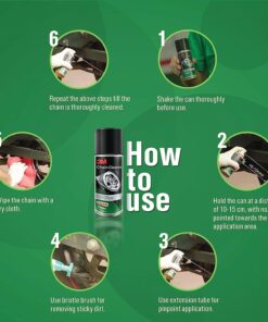 1. Deep Penetration for Thorough Cleaning: Our advanced formula is engineered for precision, effortlessly penetrating chain links and joints. This enables the cleaner to reach every nook and cranny, leaving no space untouched.