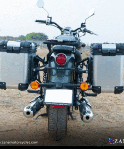 About – Panniers( 36 LTR ) Aluminium R-Flat Silver With Frame For Super Meteor 650