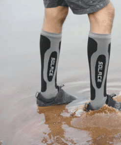 When it’s cold outside, the windproof waterproof socks insulate your feet. When it’s warm outside, it transports sweat and heat away from the skin for rapid evaporation. A knee-high aka over the calf design offers extra protection on your calf, especially ideal for snow and water sports.