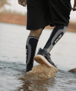 When it’s cold outside, the windproof waterproof socks insulate your feet. When it’s warm outside, it transports sweat and heat away from the skin for rapid evaporation. A knee-high aka over the calf design offers extra protection on your calf, especially ideal for snow and water sports.