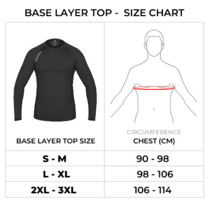Available in Three Combination Sizes: Choose from S/M, L/XL, or 2XL/3XL for the perfect fit, ensuring every rider can enjoy the unmatched comfort of the ViaTerra B100 Base Layer Top.