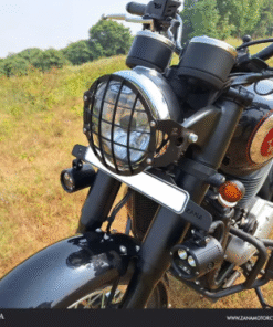 Upgrade the protection and style of your BSA Goldstar 650 with the Headlight Grill Black T-1 SS by Zana. Designed specifically for off-road conditions, this high-performance headlight grill ensures superior protection against rocks, branches, and debris, maintaining clear visibility on every ride. Crafted from premium stainless steel, the grill offers exceptional durability and a sleek black finish that enhances the bike’s overall aesthetic.