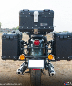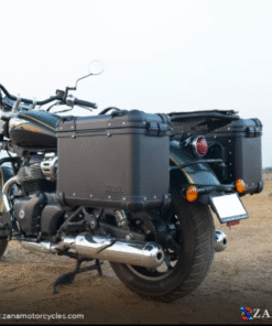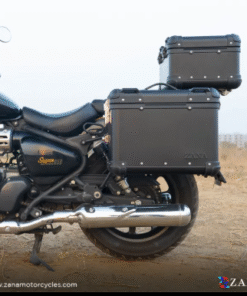 Enhance your Super Meteor 650’s storage with ZANA’s 36-liter aluminium R-Flat Black Panniers, expertly designed for durability, style, and functionality. These premium-quality side panniers, crafted from high-grade aluminum and stainless steel, offer a rust-free, waterproof construction that withstands rugged conditions while securing your belongings. Equipped with water-locking gaskets and overflow drainage, they provide comprehensive protection against moisture, ensuring your items stay dry in various weather conditions.