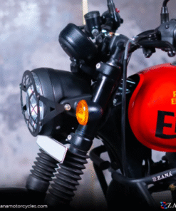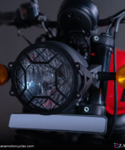The Headlight Guard for Royal Enfield Hunter 350 is designed for optimal protection and aesthetics. Featuring a patented Zana design, this guard is crafted from 100% stainless steel, offering superior durability and resistance against rust. The single-piece construction ensures strength without any welds, enhancing both the reliability and sleek appearance of your motorcycle.