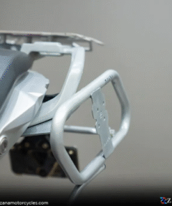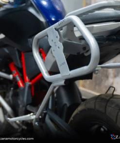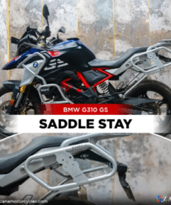 Saddle Stay for BMW G310GS – Silver with Jerry Can Mount is a robust accessory designed to enhance the utility and versatility of your bike. Constructed from super-strong steel tubing, it ensures maximum durability and support, mounted securely at three points for optimal stability. This saddle stay is compatible with both the BMW G310GS and BMW 310R models, making it a versatile choice for riders of these bikes.
