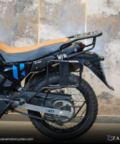 Saddle Stay for X-Pulse 200 – With Jerry Can Mount by Zana is designed with a patent-protected, robust construction for maximum durability and reliability. It is engineered to provide excellent support for heavy-duty luggage, specifically designed to accommodate a Jerry Can, which is securely mounted for long-distance rides. The Jerry Can Mount is permanently fixed, ensuring stability and reliability on all terrains.