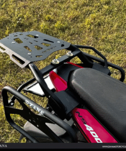 Upgrade your Pulsar NS400Z with the Top Rack with MS Plate, designed for durability and functionality. This top rack is perfectly compatible with Zana aluminum boxes, providing a secure fit for your storage needs. The rack is also fully compatible with Zana Pillion Backrest for added comfort, though the backrest must be ordered separately.