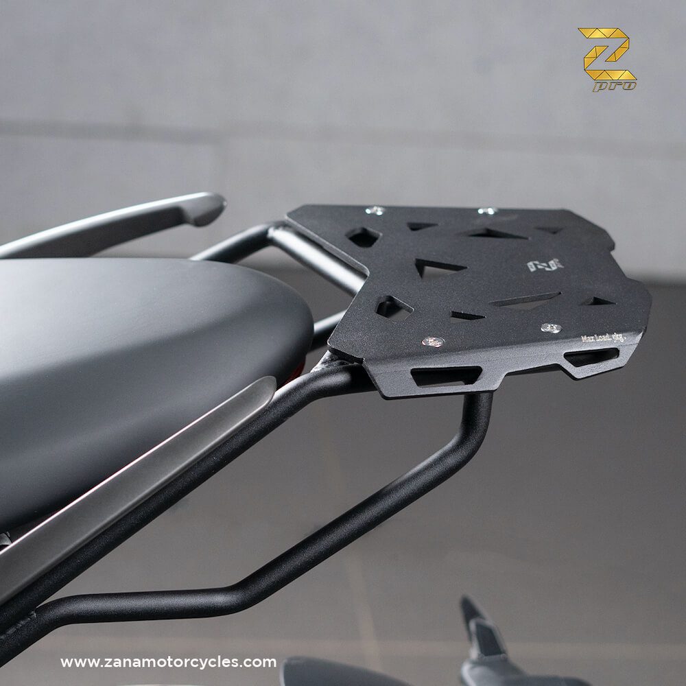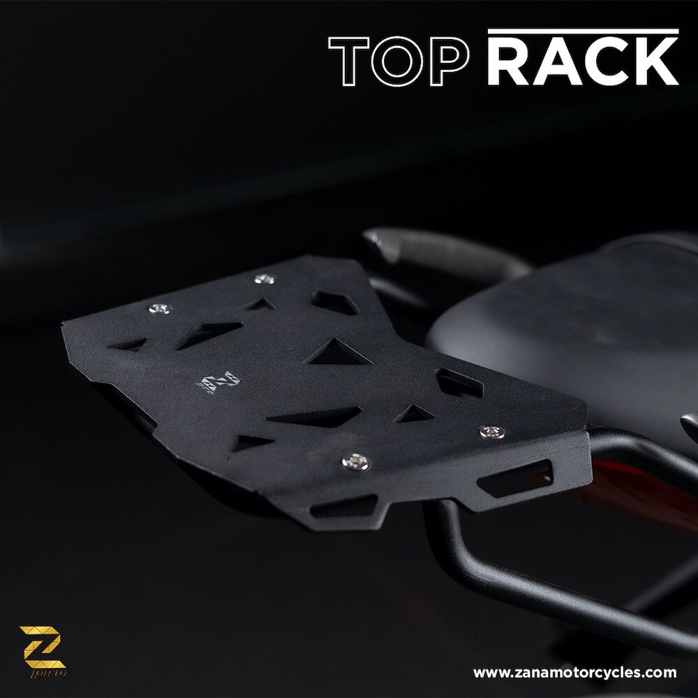 - ZANA MOTORCYCLES has a patent design exclusively available for their lightweight 100% aluminum tray for mounting top boxes.