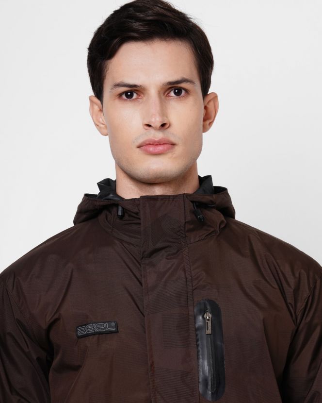 Hooded – having a hood attached or built in, typically to protect the head and neck from rain or wind