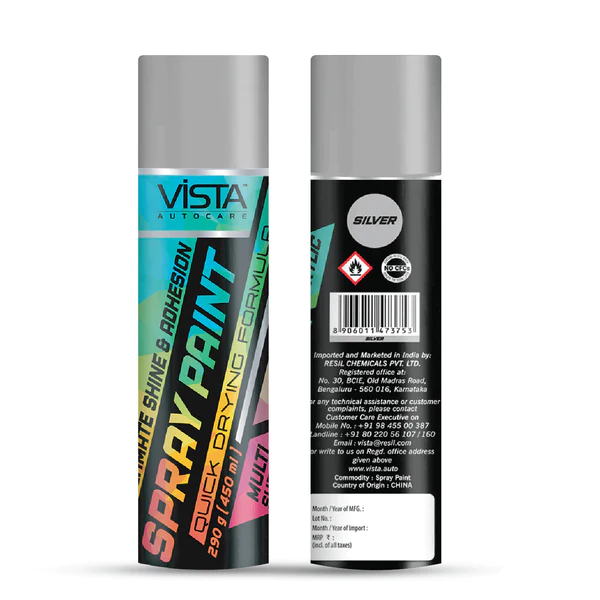 Transform your car or bike with ease using Vista’s Silver spray paint. Its quick-drying formula adheres to various surfaces, leaving a sleek and lustrous finish. Upgrade your vehicle’s appearance with Vista Spray Paint in Silver and make it shine like new!